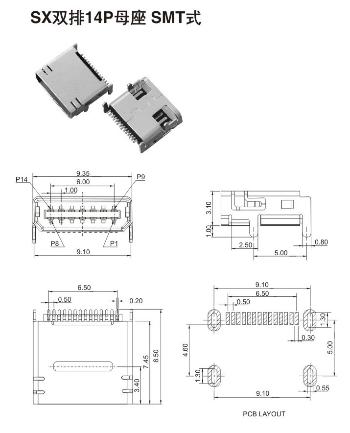 SX雙排14P母座SMT式