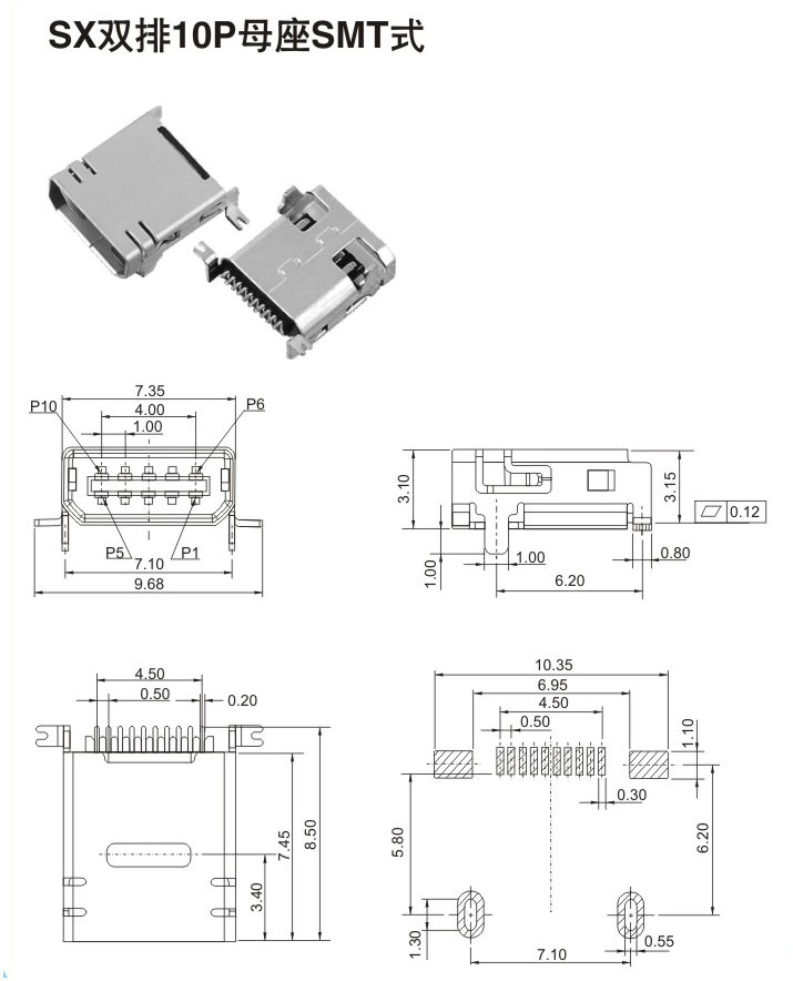 SX雙排10P母座SMT式
