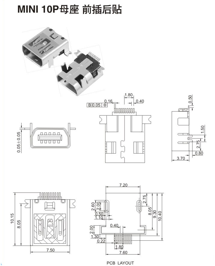 MIMI 10P母座 前插后貼