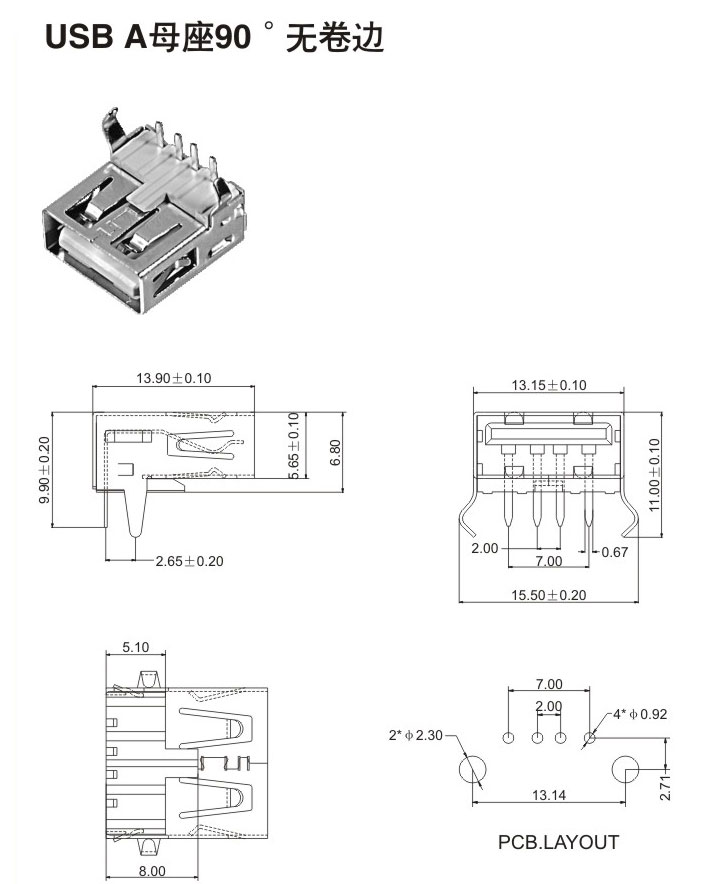 USB A母座90° 無卷邊