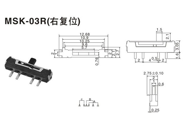 小撥動開關(guān)MSK-03R (右復位).產(chǎn)品廣泛應用于計算機周邊、多媒體音響、家電儀器、電子玩具、視聽設備、通訊設備等。
