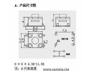 詳細介紹: 防水輕觸開關KM66貼片 本產品廣泛用于,玩具,電動玩具,玩具公仔,防盜器,家用電器,手機數(shù)碼,電子通訊,電子游戲機,汽車防盜,智能化系統(tǒng),電視機、MP3、耳機,等電腦通訊器材