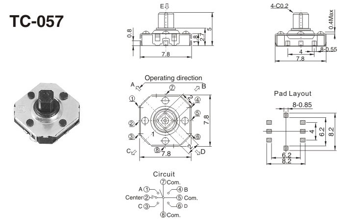 五項(xiàng)開關(guān)/TC-057本產(chǎn)品廣泛用于,玩具,電動玩具,玩具公仔,防盜器,家用電器,手機(jī)數(shù)碼,電子通訊,電子游戲機(jī),汽車防盜,智能化系統(tǒng),電視機(jī)、MP3、耳機(jī),等電腦通訊器材